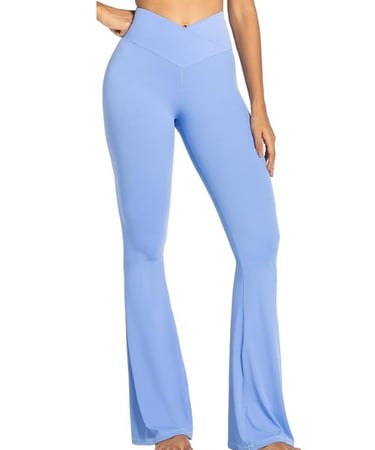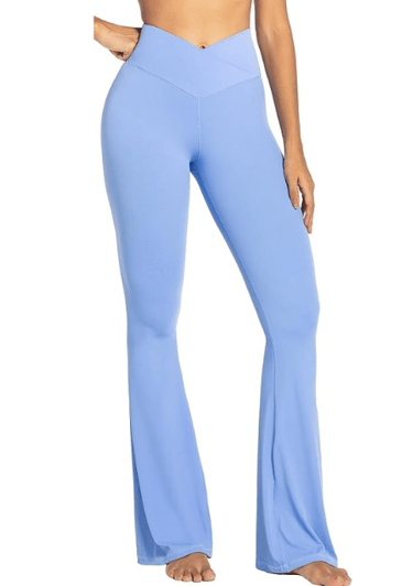 Sunzel Crossover Tummy Control Yoga Pants in Light Blue