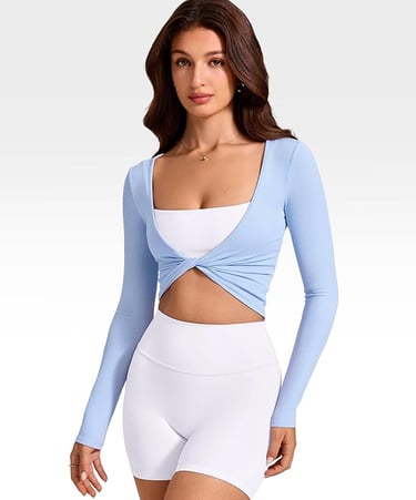 INGIA Long Sleeve Knot Top in Milk Blue