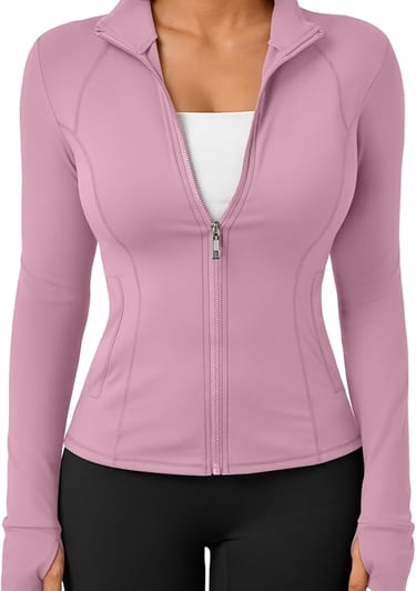 LUYAA SLim Fit Zip Up Jacket in Rose